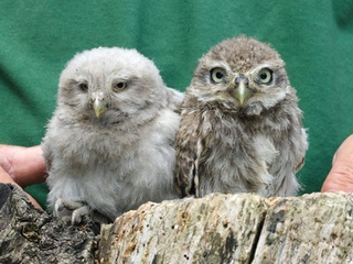 Update on the Little Owl Orphans: Thursday 15th July 2006All wild Little Owl orphans minus Ashley were taken to the release aviary on the afternoon of Thursday 13th July 2006 for the next stage of their journey back to the wild. They will stay in the release aviary for about a fort-night before the feeding hatch is eventually lowered to provide them with their freedom.
