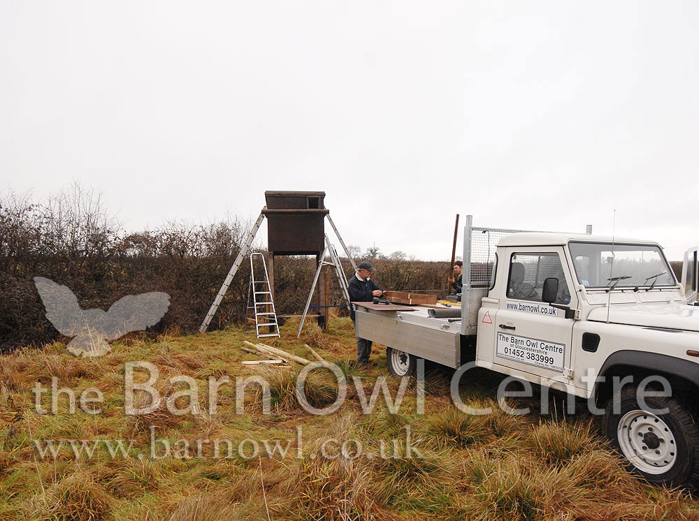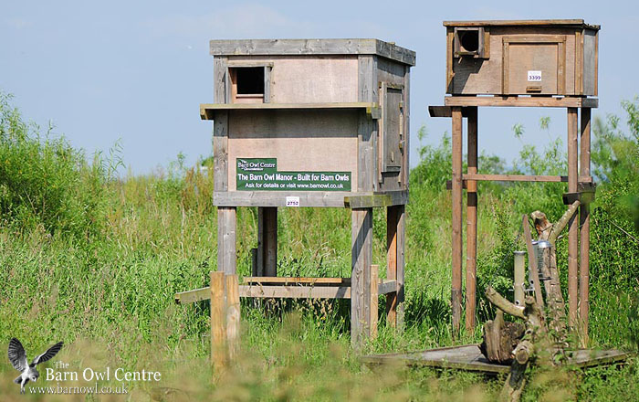 Barn Owl Manor plus a Barn Owl Box on stilts to show other methods we use to help Barn Owls