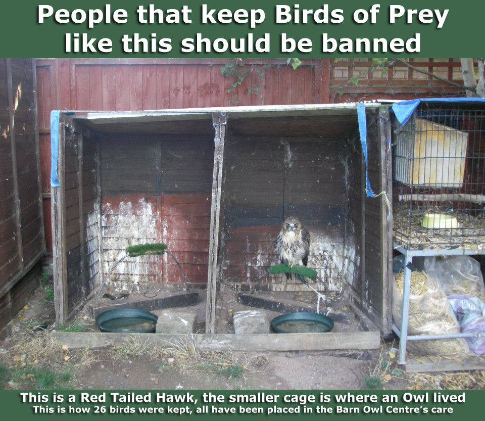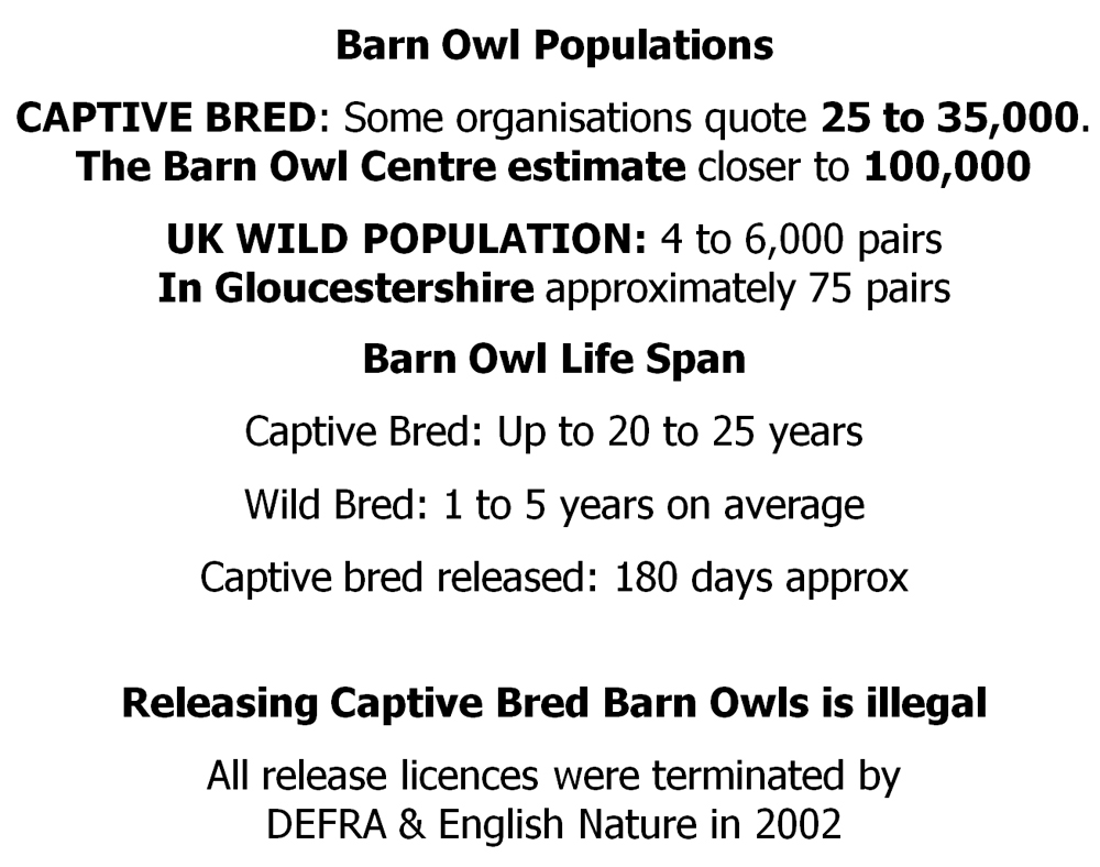 Barn Owl (Captive Bred) Sadly this Owl was kept very badly in a rabbit hutch & from the injuries sustained we sadly had to put the Owl to sleep. The more Owls people breed in captivity the problems like this get more common. Think first before buying Owls