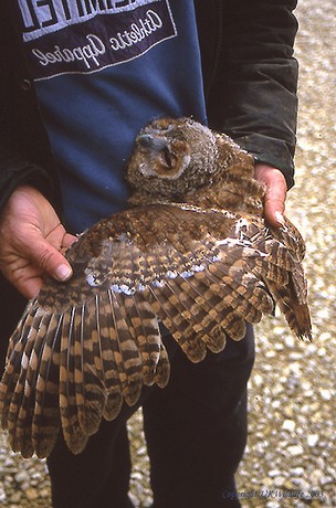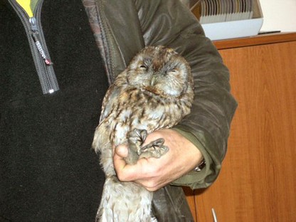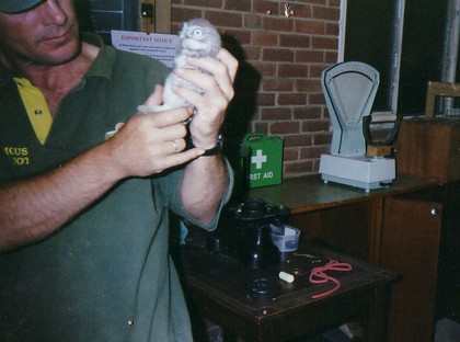 Tawny Owl Orphan being checked prior to re-release back to the wild