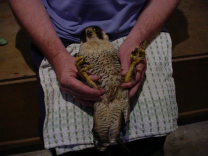 Peregrine Falcon (Captive Bred) Handed in because it was badly mistreated by its keeper. Due to intensive injuries to the right leg, the falcon was sadly put to sleep.