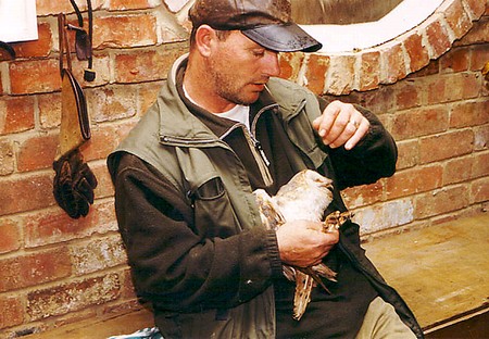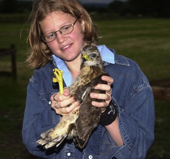 Wild Buzzard being prepared for examination prior to its release back to the wild