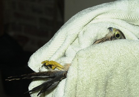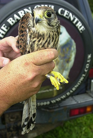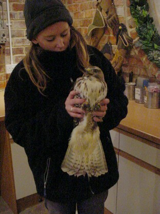 Kestrel arrival after being hit by a vehicle, see previous kestrel images showing release