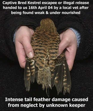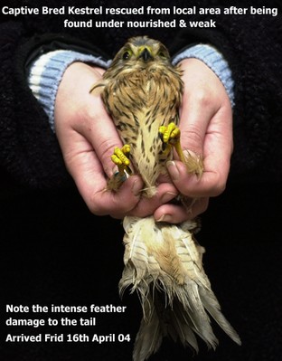 Kestrel (Captive Bred) Note the feather damage to tail & wingtips. WHY?.