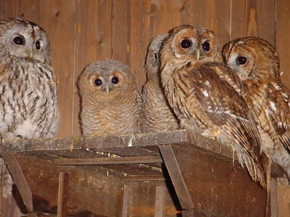 Tawny Owlets & foster parents. Part of a rehabilitaion program to release Wild Orphans back to the wild